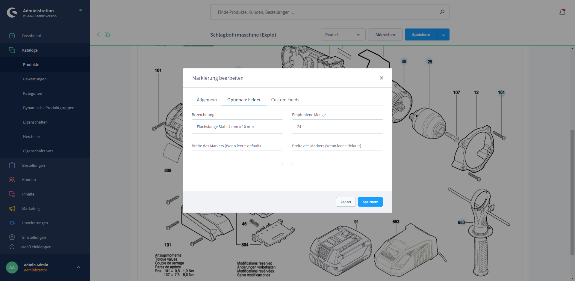 The markings are now displayed on the exploded view in the admin as well as in the Frontend.