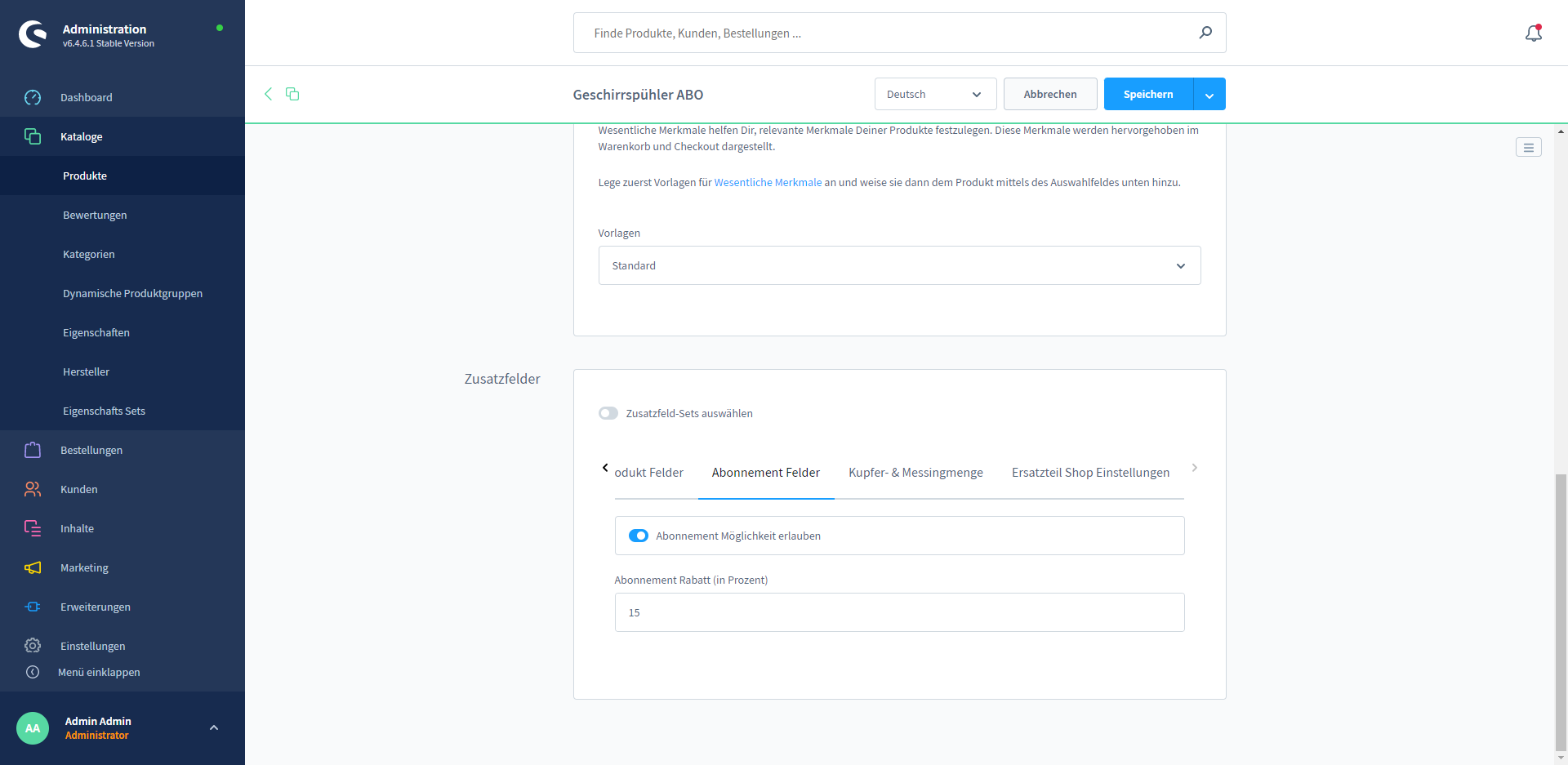 Display of subscriptions in the Shopware admin area