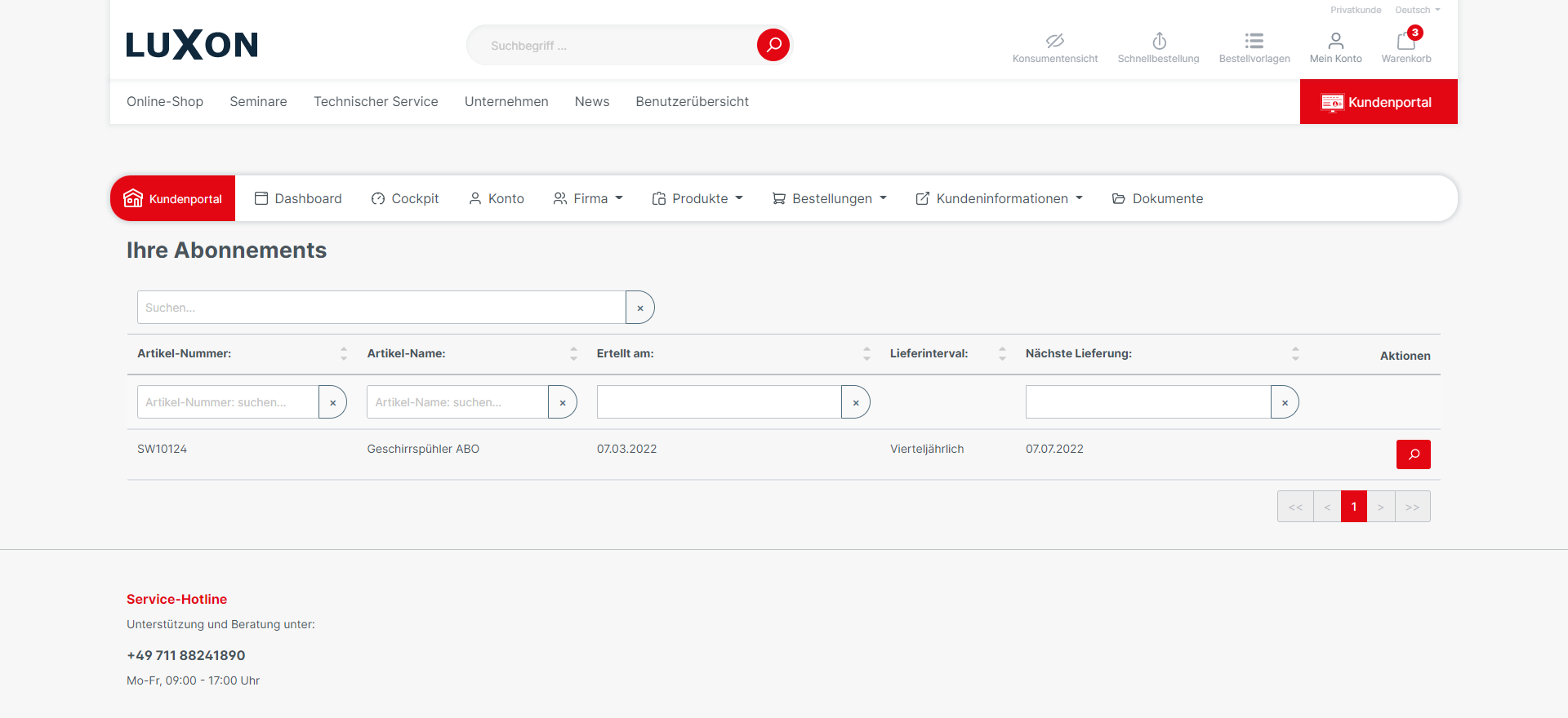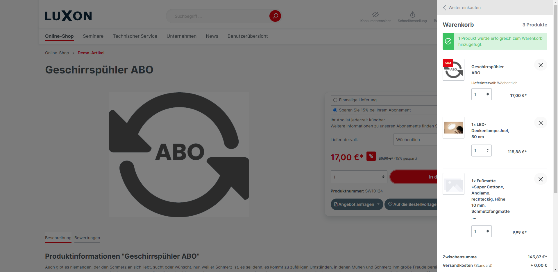 Products for which a subscription has been taken out are marked with a subscription badge in the shopping cart. Hence, it is for costumers/buyers directly recognizable that it is a subscription product.