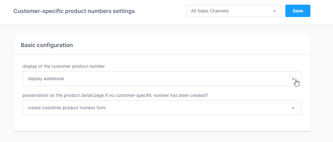 You can control how these numbers appear to your customers under "Display of the customer-specific product number":