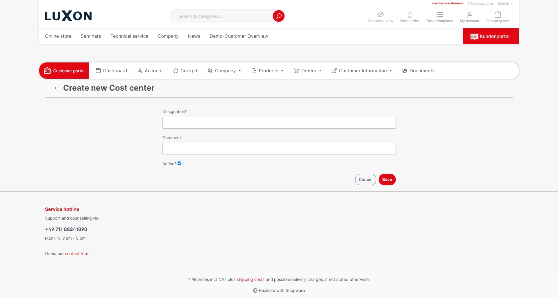 The cost center plugin was developed especially for B2B customers. The plugin enables the booking of orders to previously created cost centers. In the cost center overview (B2B platform) all order transactions are displayed, which were booked to a cost center.