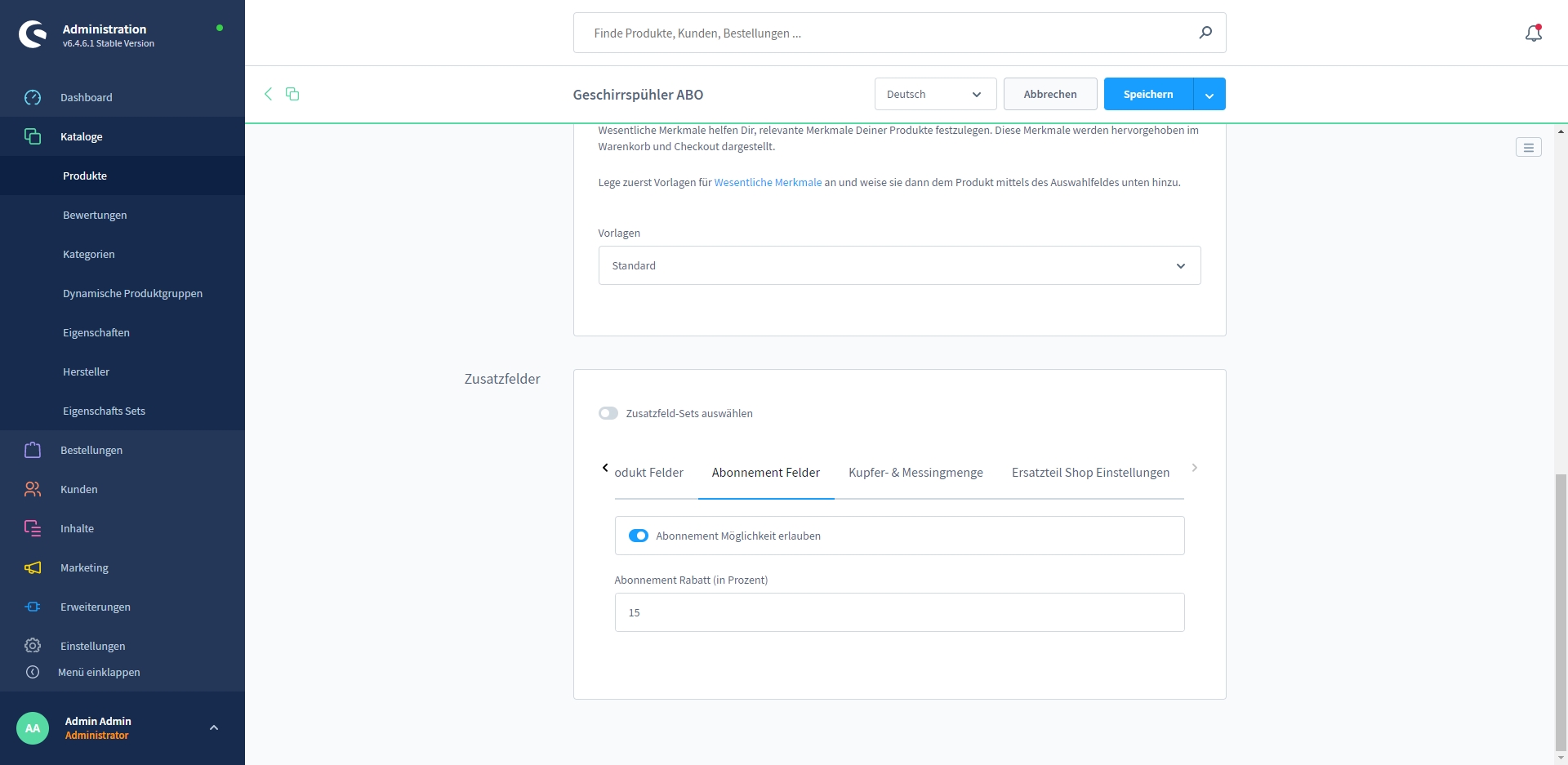 Display of subscriptions in the Shopware admin area