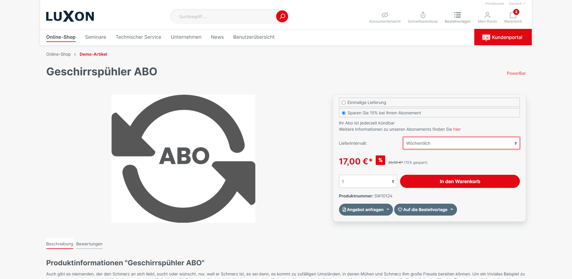 By activating the subscription function, customers/buyers have the option of selecting a subscription in addition to the one-off delivery.