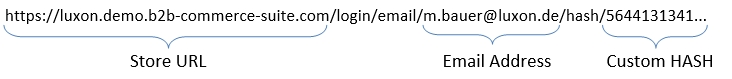 The hash is stored in the backend for the user groups customers, buyers and sales staff. The overall URL can be copied from the B2B platform's account management and saved for example in the browser's favorites.