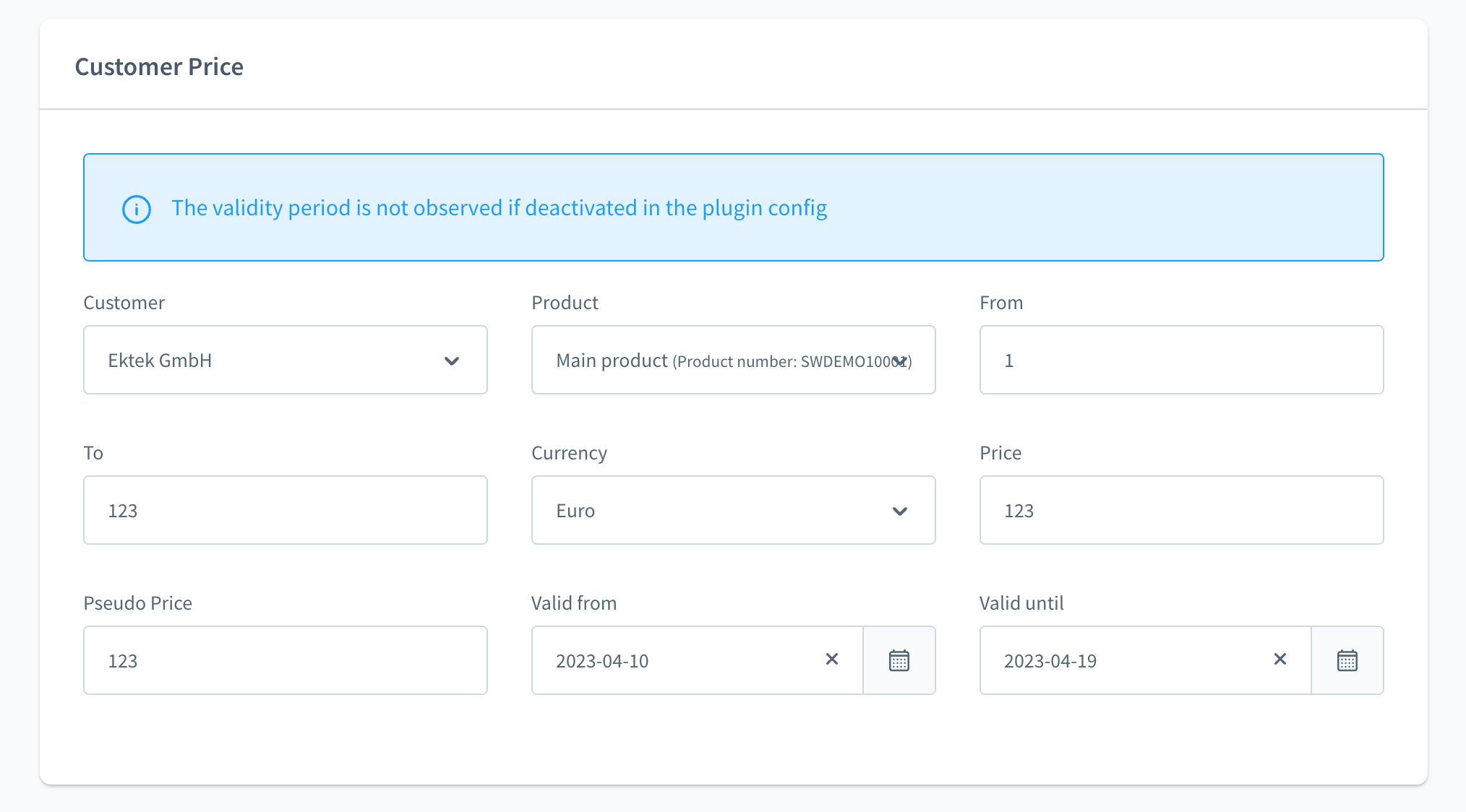You can specify a validity of individual customer prices. Period of validity from/until. This means that a custom price is valid only in this period.
