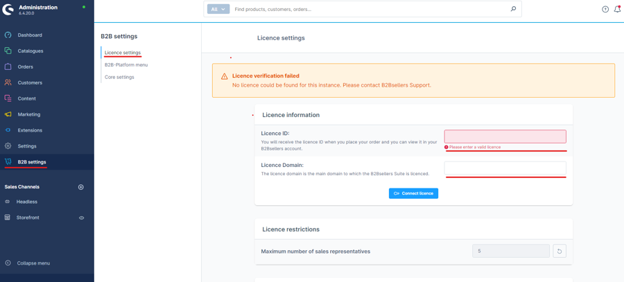 After the successful purchase of your license, you will receive a welcome email from us. This will contain your personal license key. To register in your store, go to the admin area under B2B Settings > License Settings.